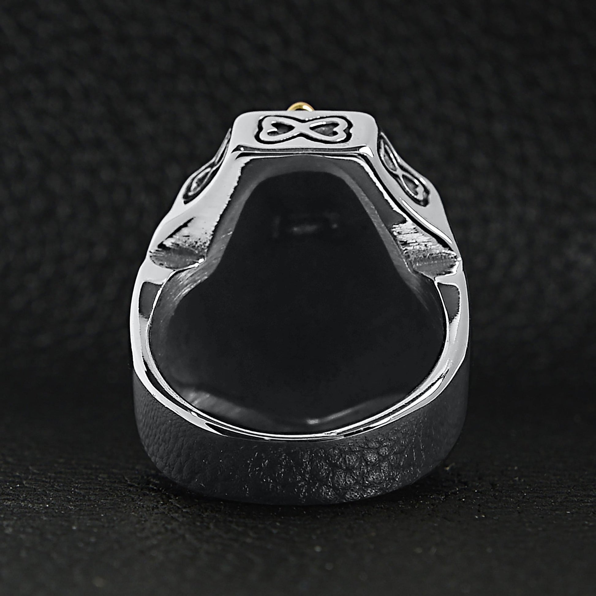 Stainless steel 18K gold pvd coated cross on shield signet ring from our Signet Ring Collection is a great accent to express your unique style. This unique signet ring features a detailed cross on a shield that is a great standalone statement ring but also works great alongside similar rings. This ring is custom molded and cast with a premium blend of surgical stainless steel that offers durability and comfort, even after exhaustive wear. Combined with a clean polished finish, the Stainless Steel 18K Gold PVD coated Cross On Shield Signet Ring works great as an everyday statement ring that can be worn in water or while you sweat without worry.