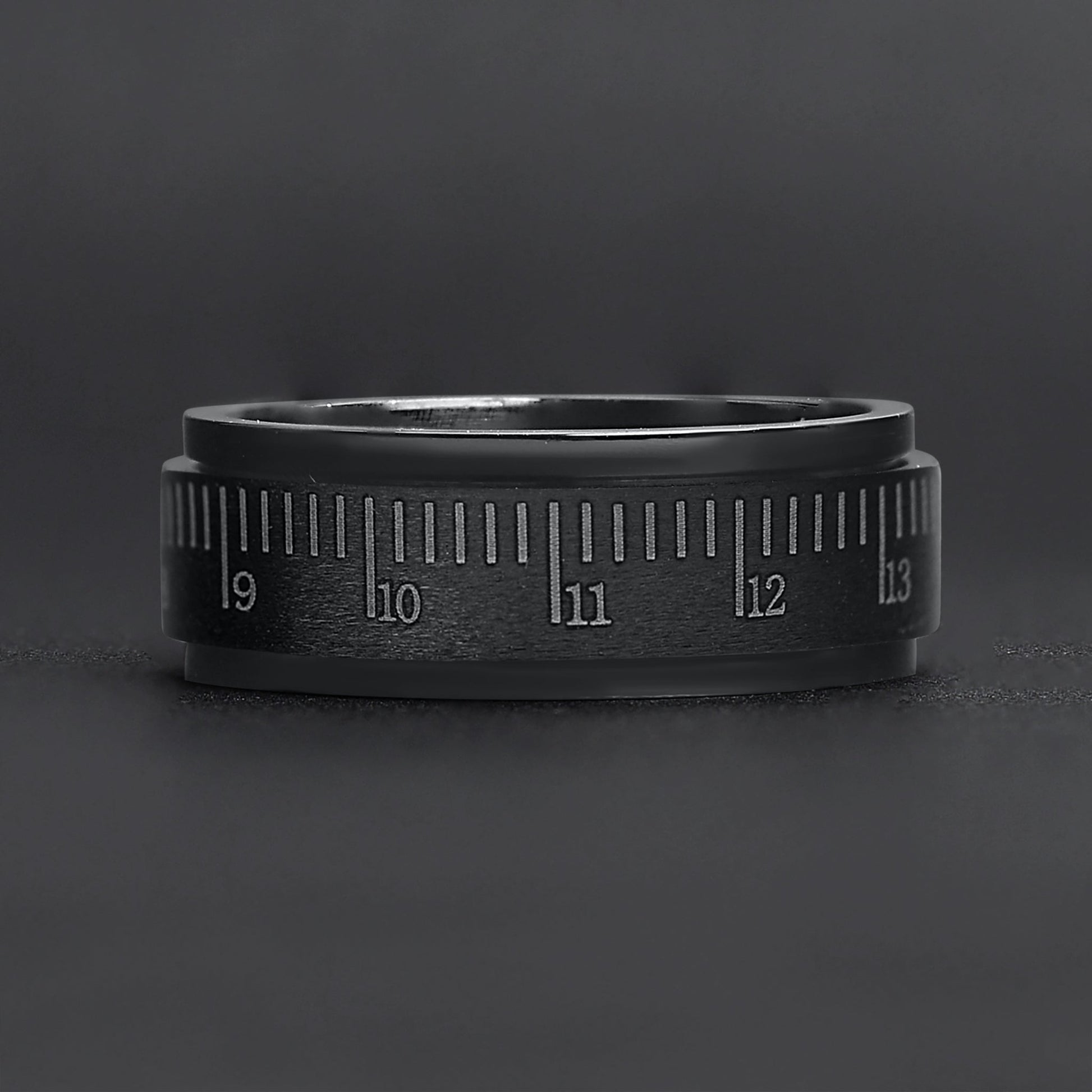 The Black Ruler Spinner Ring is more than just a ring. Crafted with a polished stainless steel inner layer and top layer that spins 360°, this ring provides entertainment while it also helps to relieve stress. The Stainless Steel Black Ruler Spinner Ring is made with surgical stainless steel that offers enhanced durability, even after everyday wear.