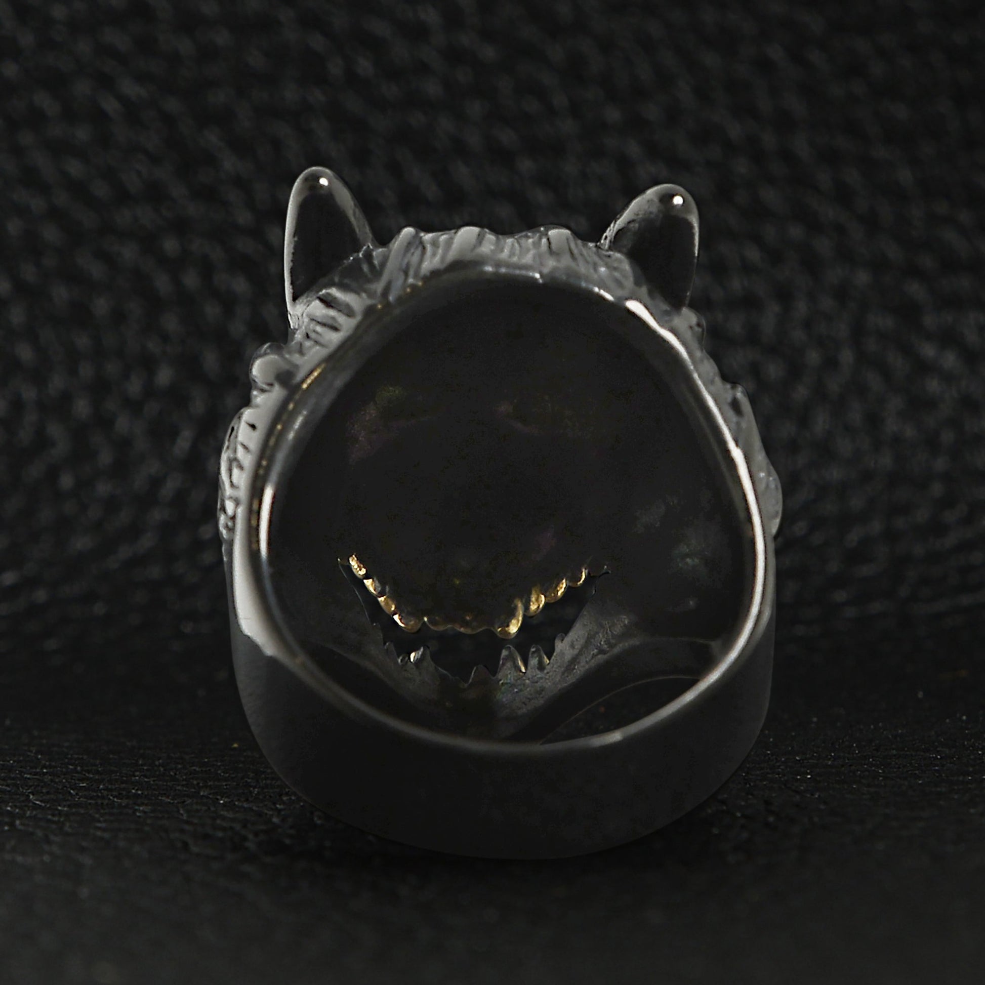 Black Stainless Steel Wolf With 18K Gold PVD Coated Teeth Ring