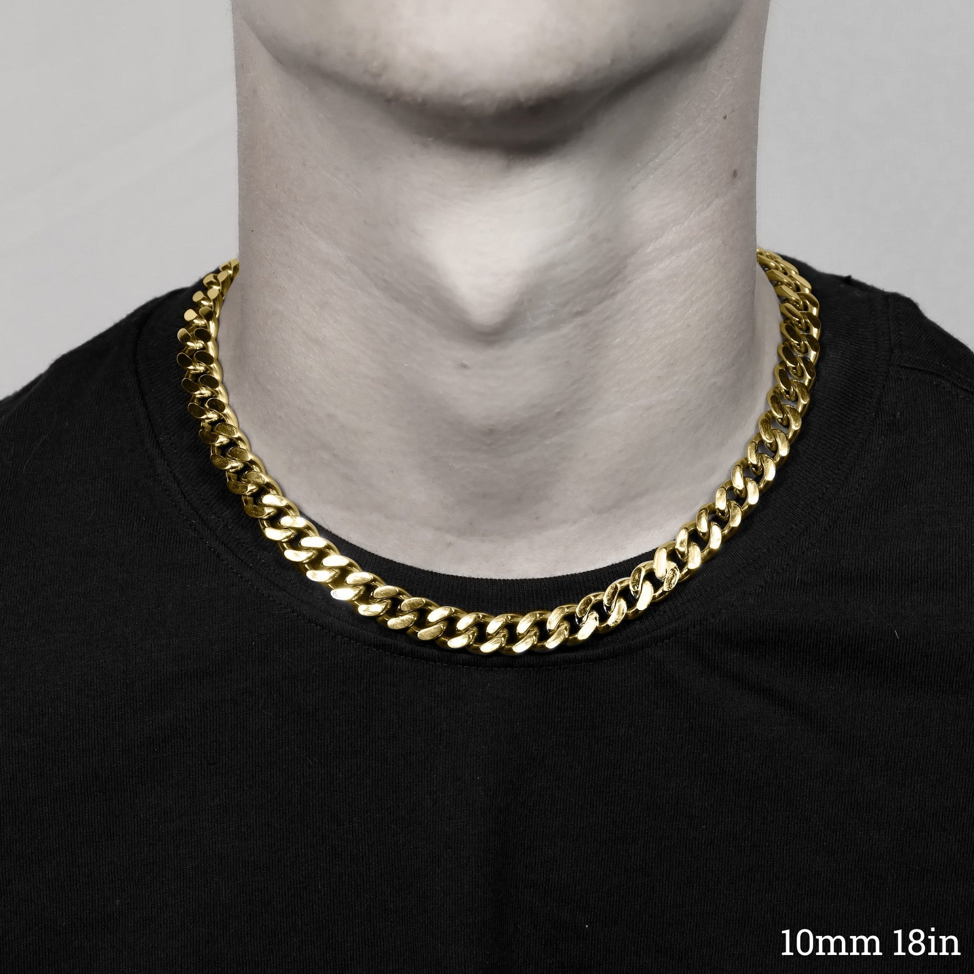 The most wanted gold chain to complement your every day style - The Gold Curb Chain Necklace is nothing short of a classic. Made with 18K Gold PVD Coated Stainless Steel in a classic diamond cut curb chain design, this chain necklace is a staple piece to keep in your collection. The curb chain necklace is great for wearing alone, layering with other necklaces, and even adding personal pendants for a unique touch. This chain is available in a variety of widths, you can choose a smaller width for a minimalist look, or choose a larger width to wear more as a statement piece. So whether you treat yourself or gift to a loved one, this versatile Gold Curb Chain Necklace is a sure winner for any style for both men and women.