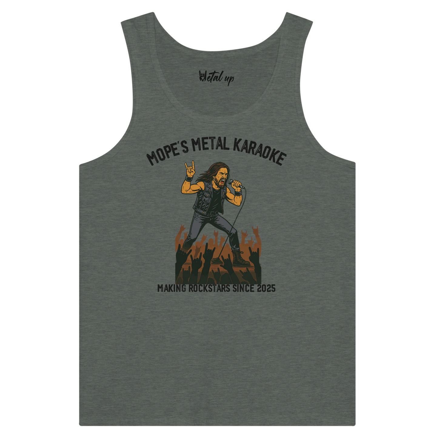Lightweight but unbreakable, this tank isn’t just gear—it’s your battle flag, your badge of chaos, your declaration that you didn’t show up to blend in… you came to shred .Mope's Metal Karaoke — Making Rockstars Since 2025.