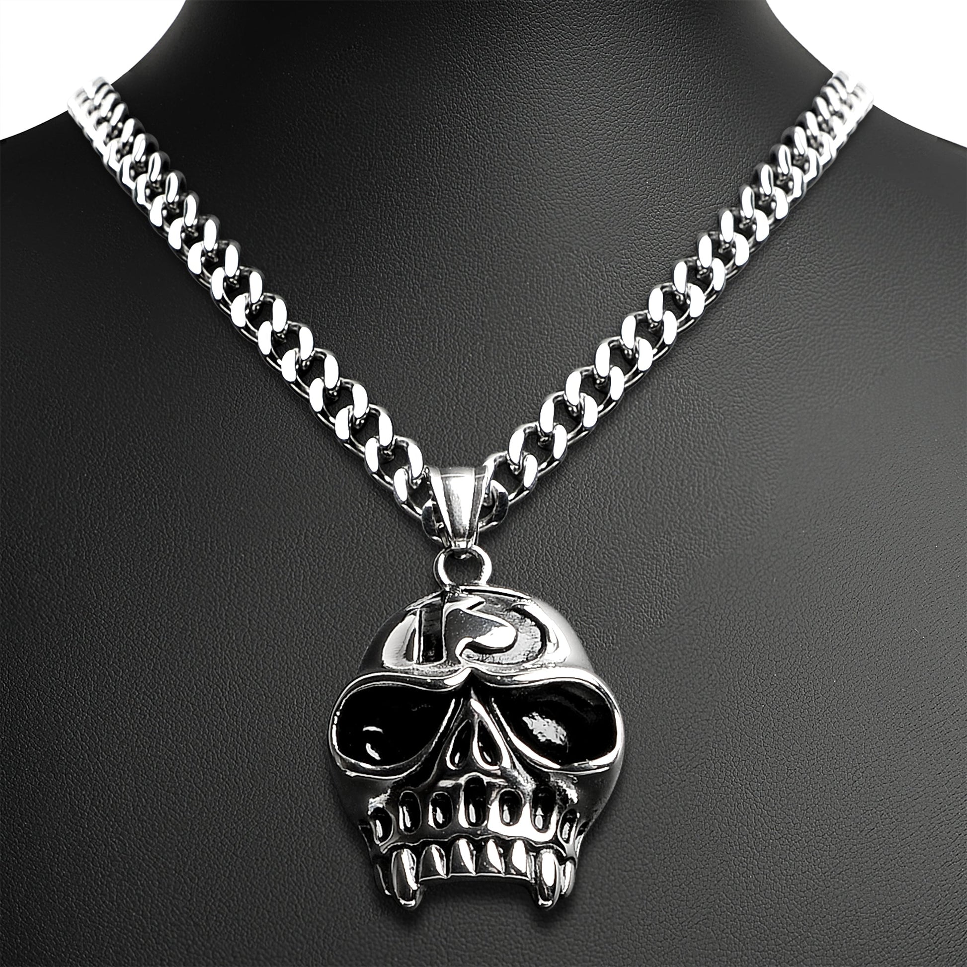 Stainless Steel "13" Fanged Skull Curb Chain Necklace