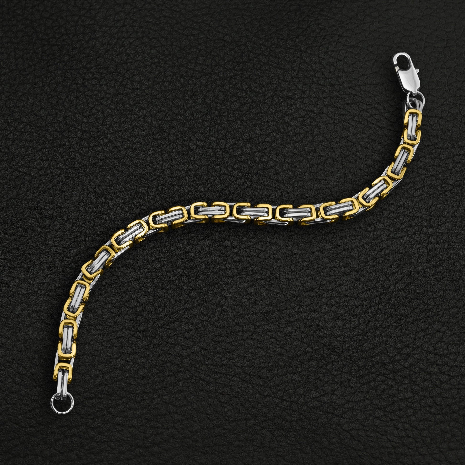 Stainless Steel And 18K Gold PVD Coated Byzantine Chain Bracelet