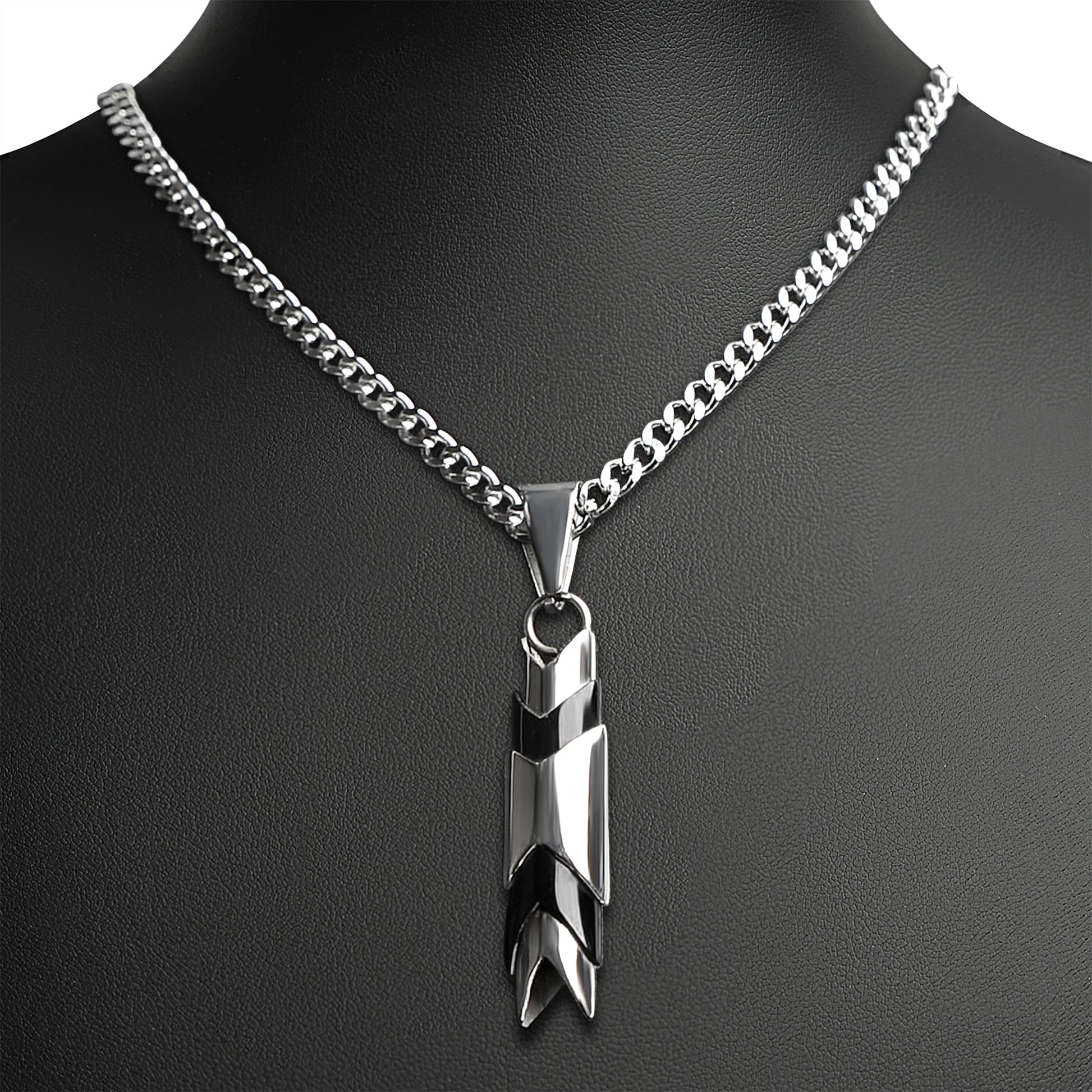 Stainless Steel And Black Hollow Chevron Tube Curb Chain Necklace