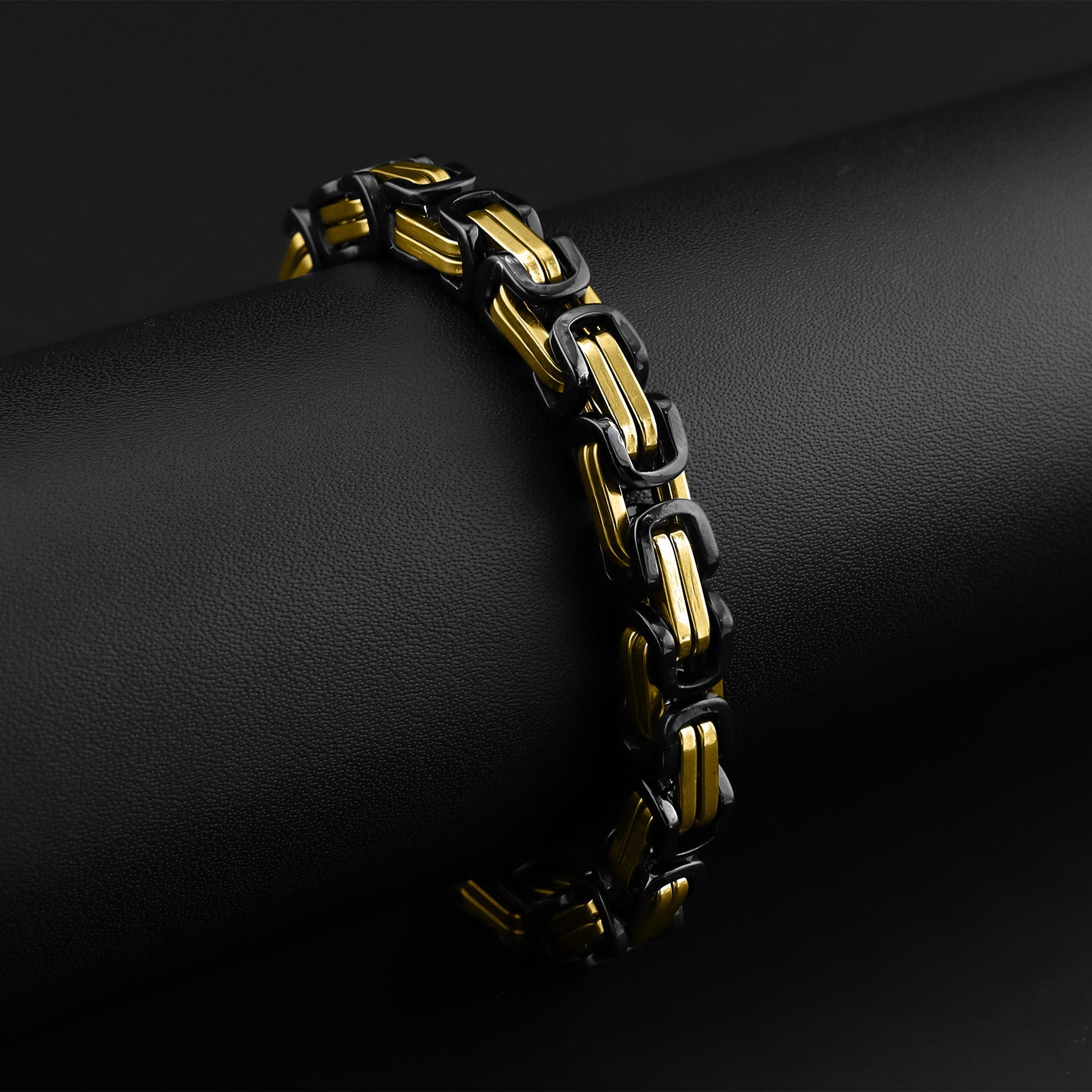 Stainless Steel Black and 18K Gold PVD Coated Byzantine Chain Bracelet