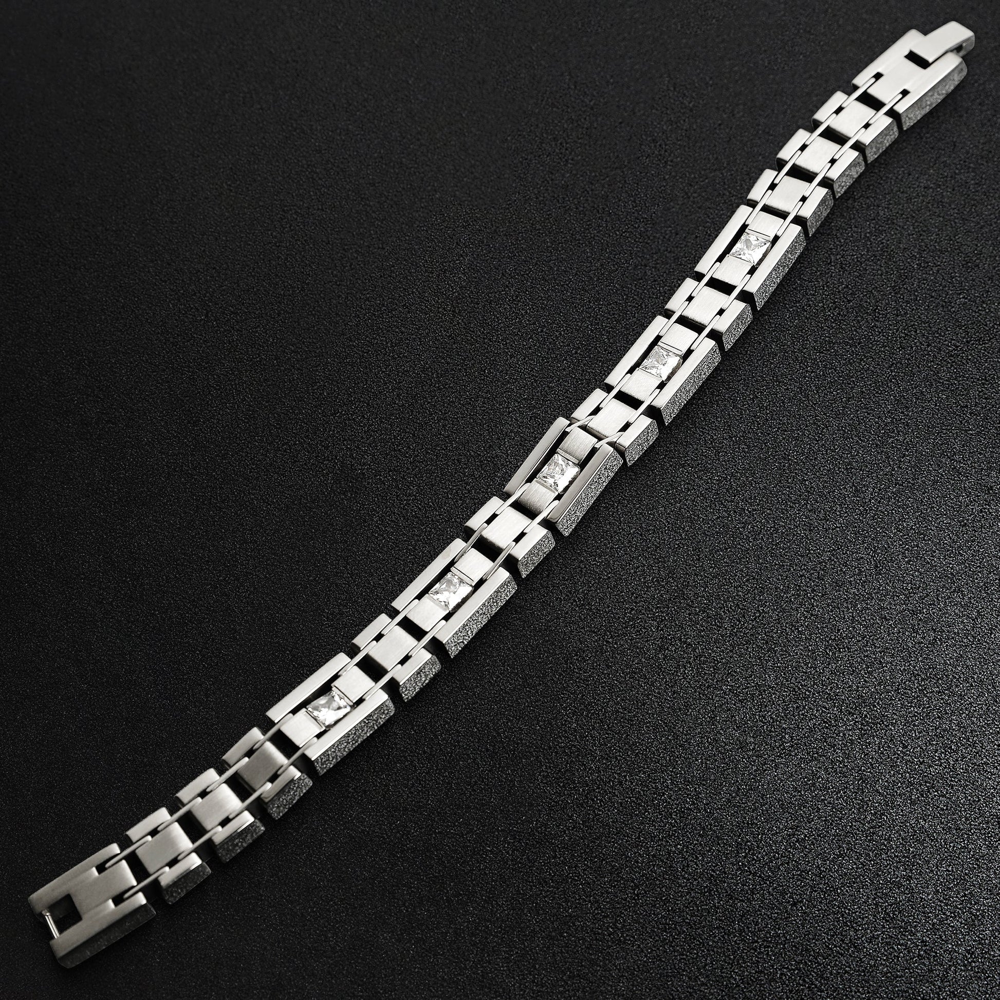 Description: Stainless steel Cubic Zirconia accent bracelet.