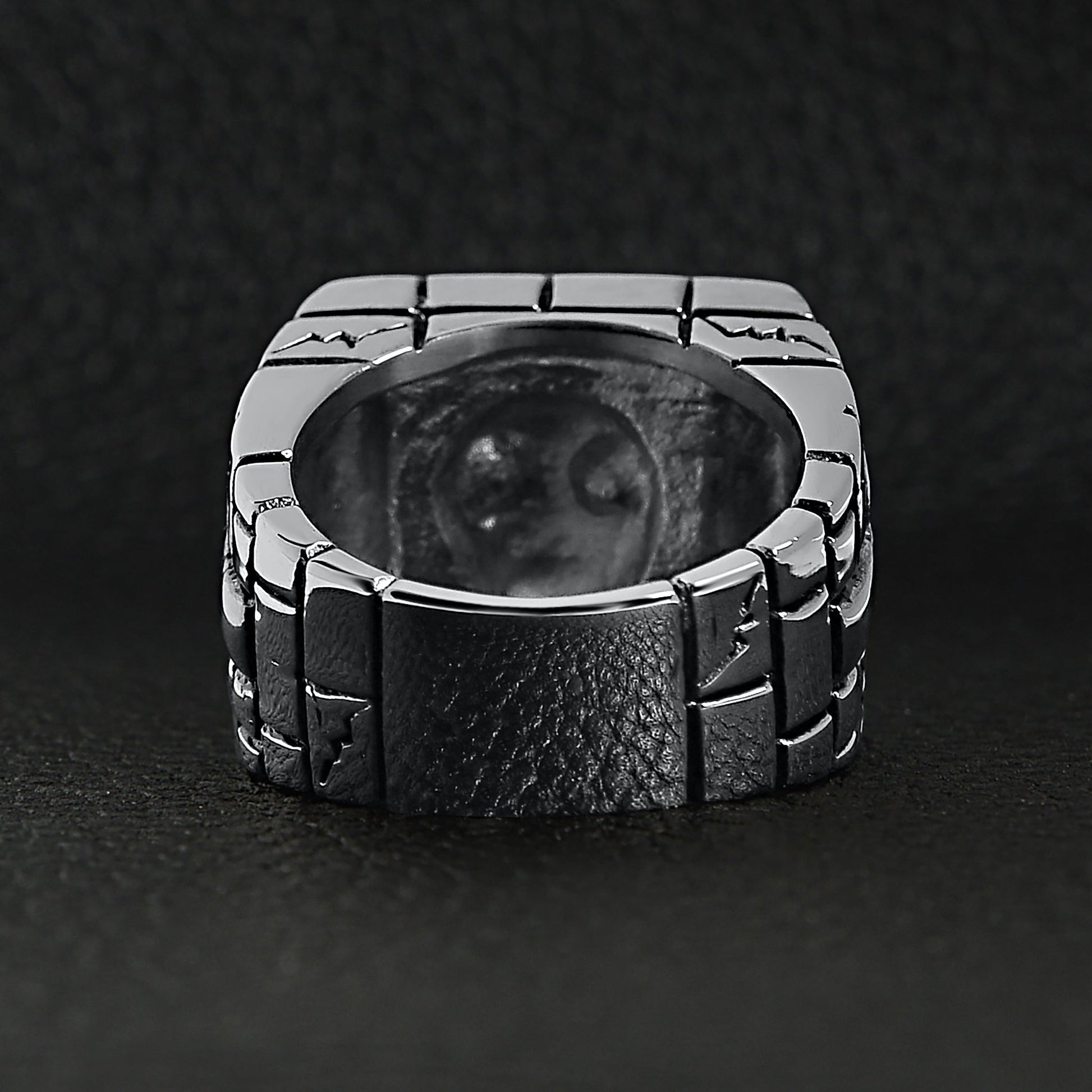 The Stainless Steel Medieval Jailed Skull With 18K Gold Plated Cross Accents Ring from our Bones Collection is custom molded and cast with a premium blend of surgical stainless steel that offers enhanced durability, even after exhaustive wear. Combined with a clean polished finish, the Stainless Steel Medieval Jailed Skull With 18K Gold Plated Cross Accents Ring works great as an everyday statement ring that can be worn in water or while you sweat without worry.