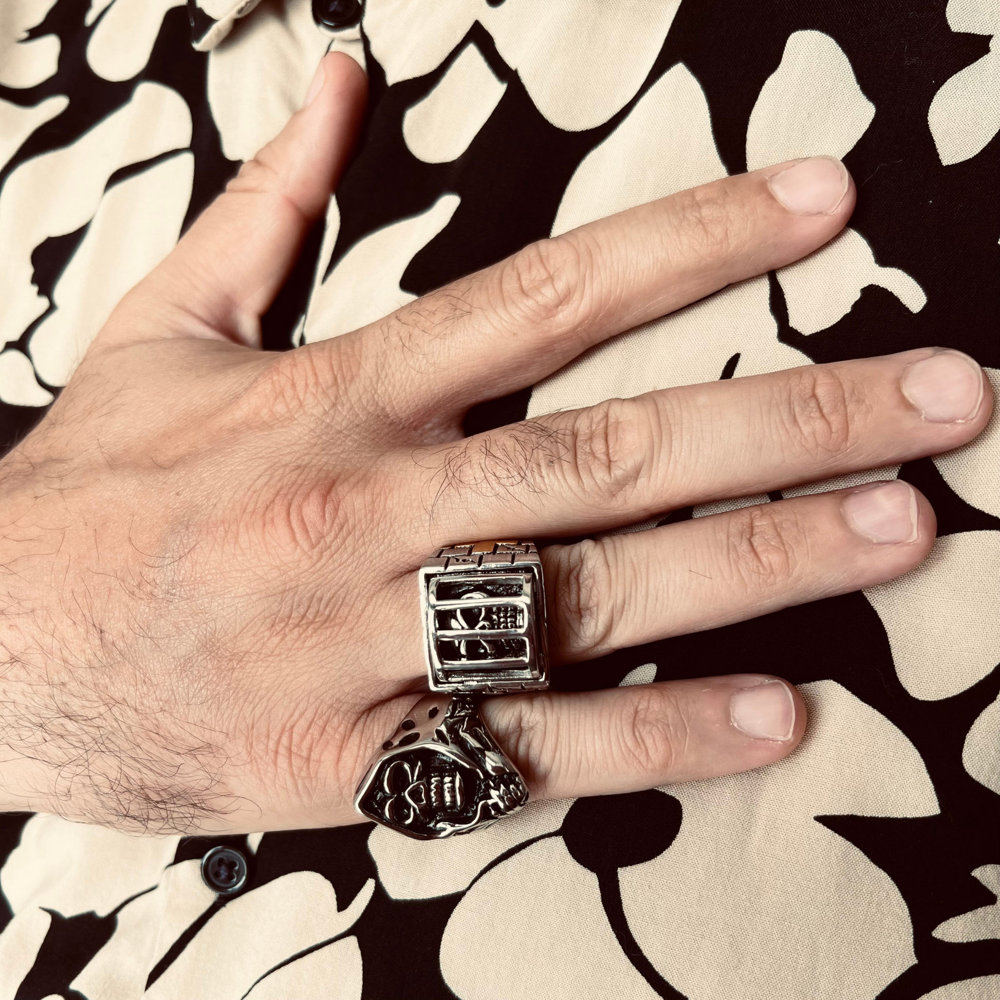 Stainless Steel Medieval Jailed Skull & 18K Gold Plated Cross Ring
