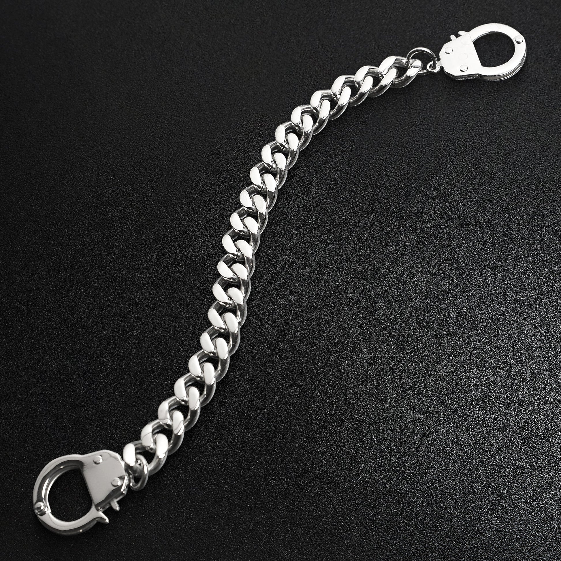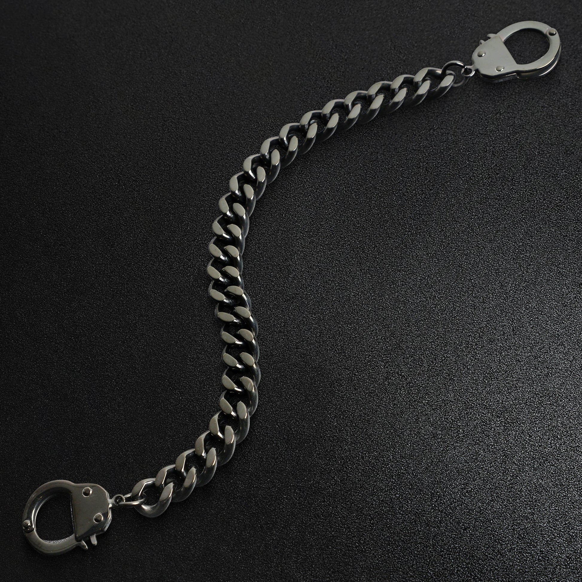 Description: Stainless steel or black handcuff bracelet.