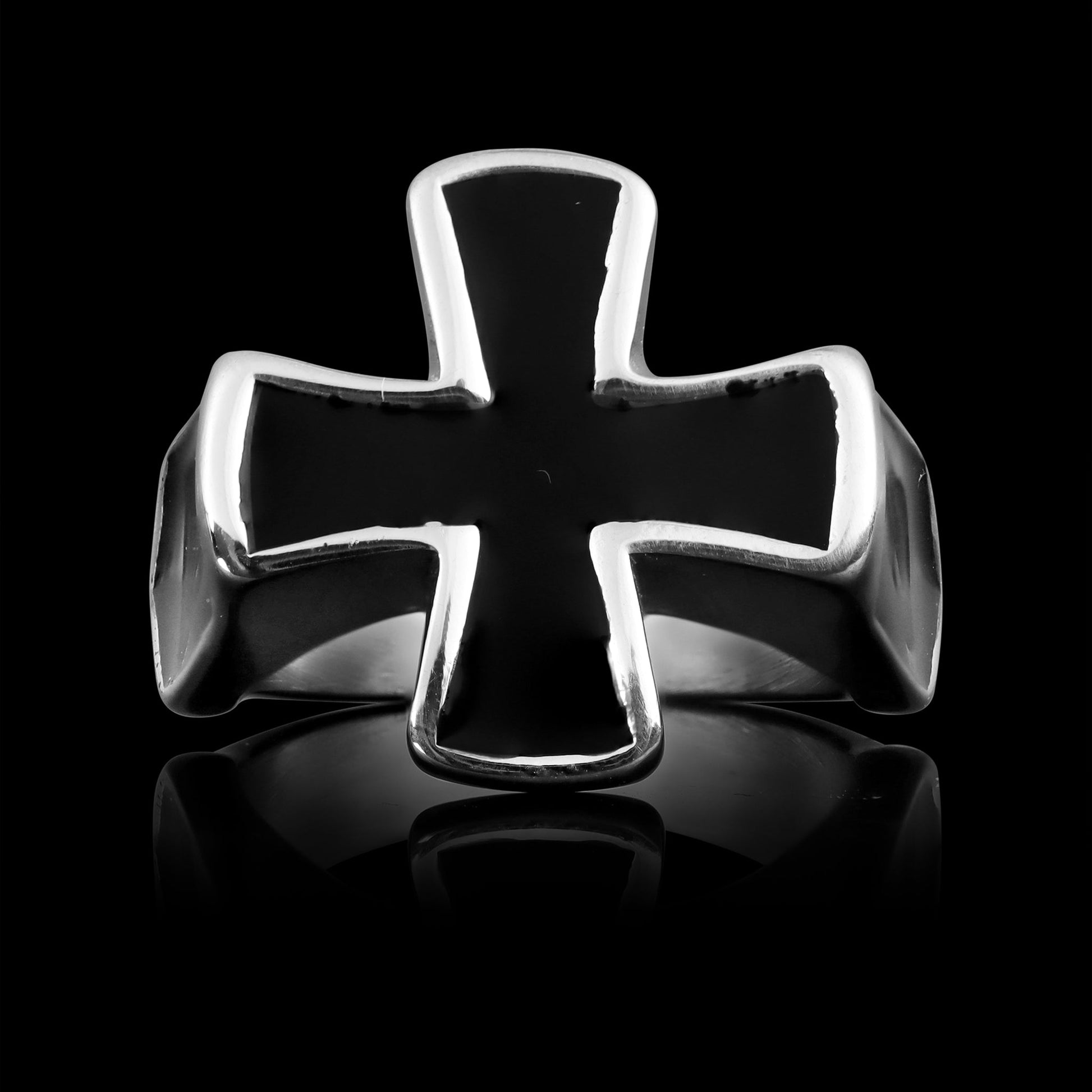 The Stainless Steel Polished Black Enamel Cross Ring is custom molded and cast with a premium blend of surgical stainless steel that offers enhanced durability, even after exhaustive wear. This cross ring features a unique black enamel cross and a polished stainless steel finish for the perfect minimalist look with a touch of detail. The Stainless Steel Polished Black Enamel Cross Ring looks great as an everyday statement ring that can be worn in water or while you sweat without worry.