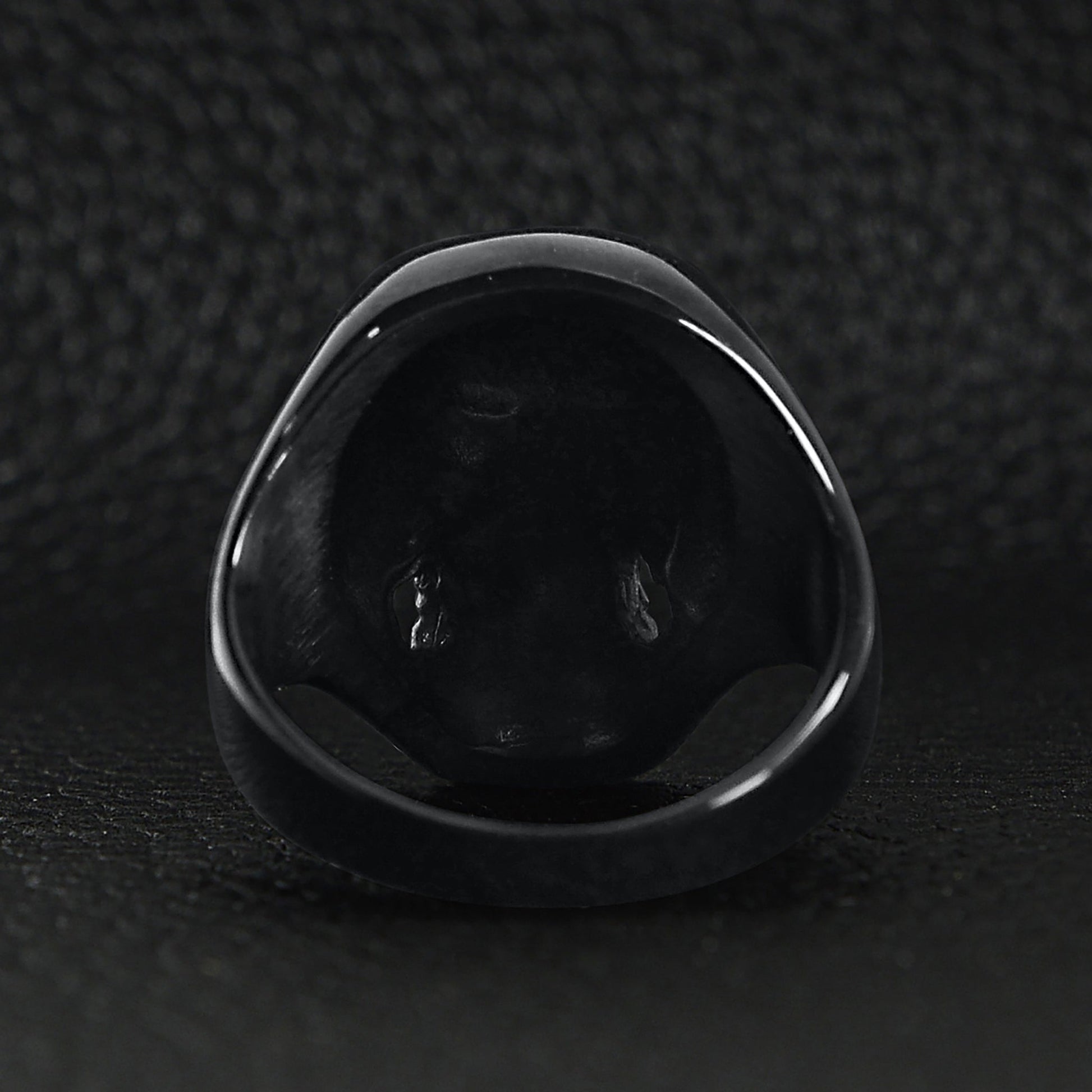 Stainless Steel Red CZ Eyed Black Skull Unisex Ring
