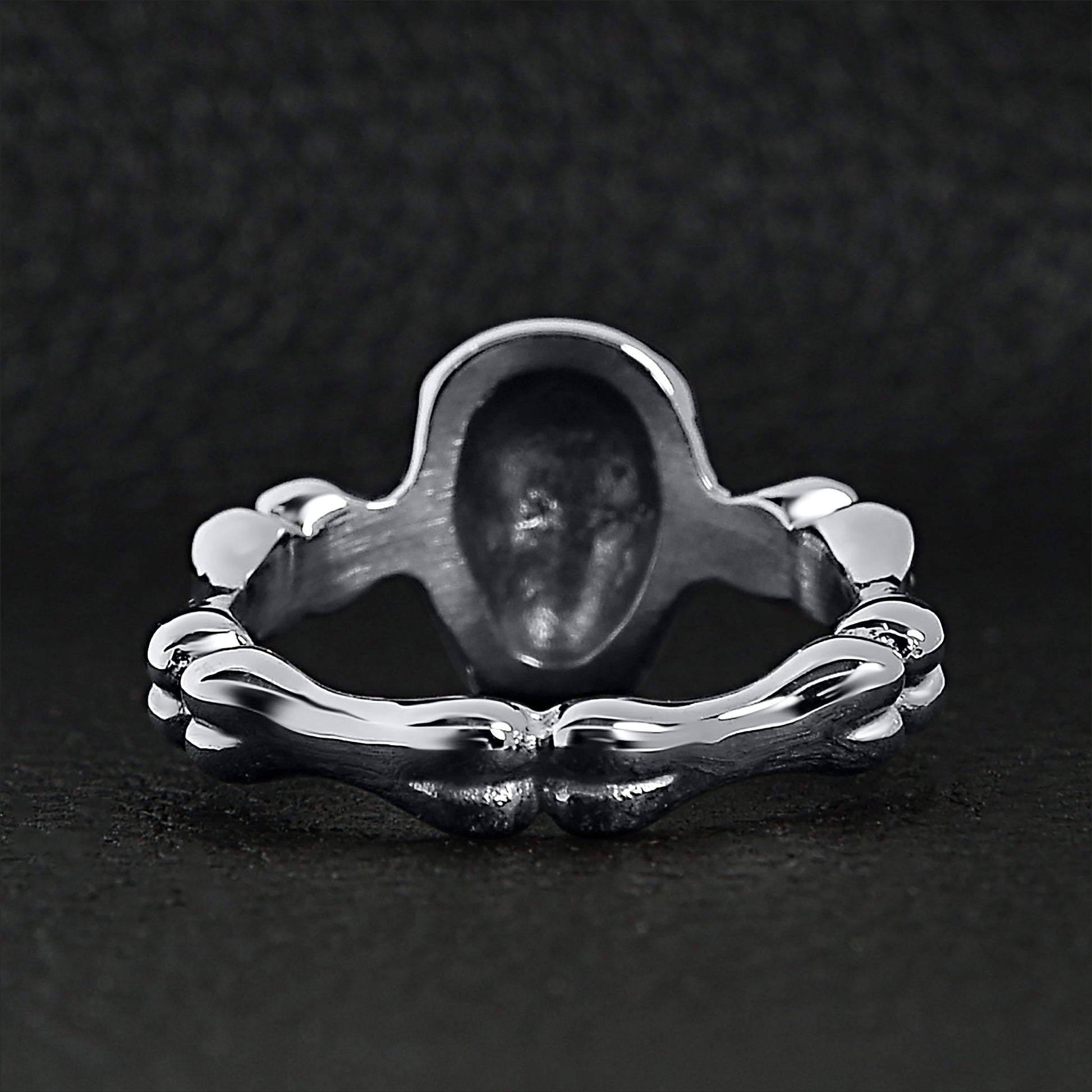 The Stainless Steel Skull And Bones Ring from our Bones Collection is custom molded and cast with a premium blend of surgical stainless steel that offers enhanced durability, even after exhaustive wear. Combined with a clean polished finish, the Stainless Steel Skull And Bones Ring works great as an everyday statement ring that can be worn in water or while you sweat without worry.