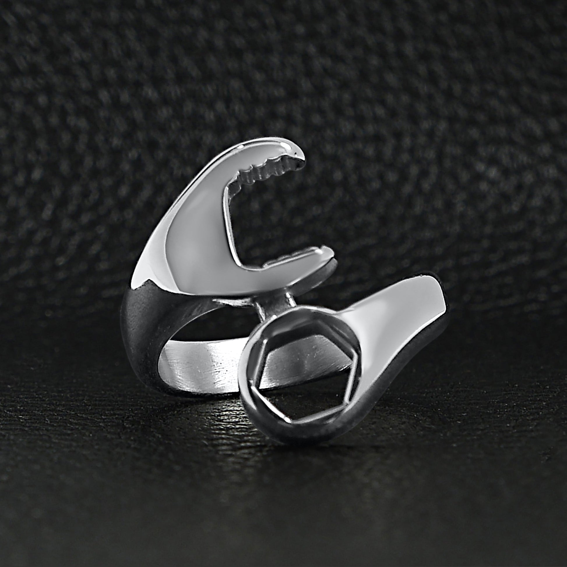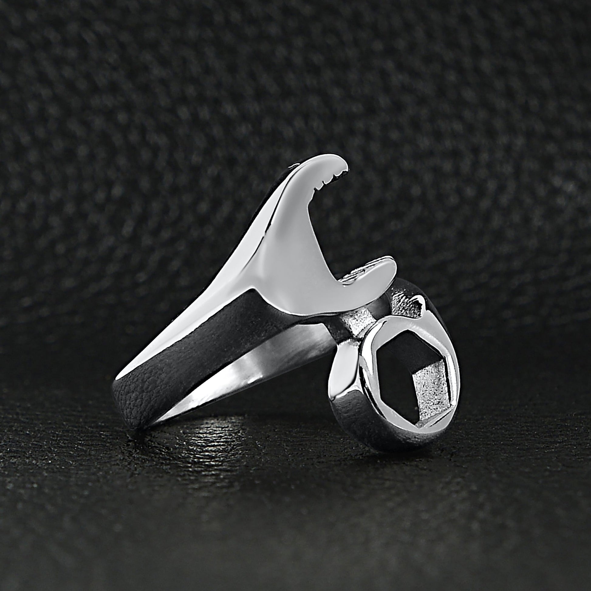The Stainless Steel Wrench Ring from our Biker Collection is custom molded and cast with a premium blend of surgical stainless steel that offers enhanced durability, even after exhaustive wear. Combined with a clean polished finish, the Stainless Steel Wrench Ring works great as an everyday statement ring that can be worn in water or while you sweat without worry.